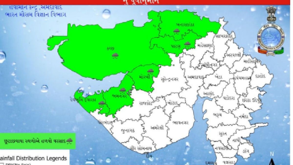 નવા વર્ષની પૂર્વસંધ્યાએ બુધવારે, ઉત્તર ગુજરાતના બનાસકાંઠા અને પાટણ તેમજ સૌરાષ્ટ્ર-કચ્છ પ્રદેશના જામનગર, મોરબી, દ્વારકા અને કચ્છમાં છૂટાછવાયા સ્થળોએ હળવા વરસાદની આગાહી છે.