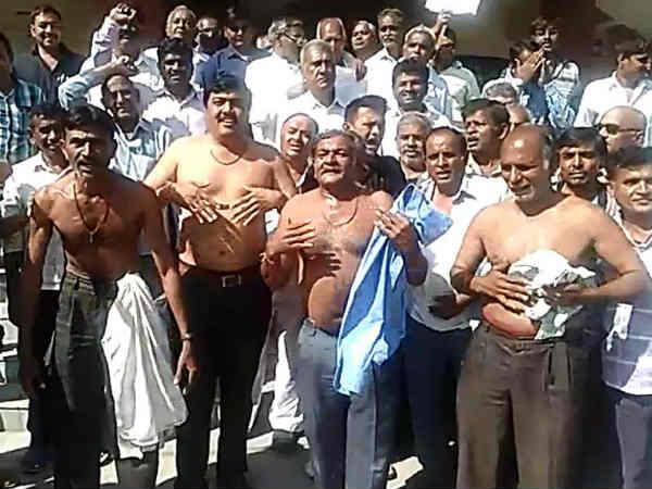અમરેલીમાં ખેડૂતોએ કર્યો અર્ધનગ્ન વિરોધ