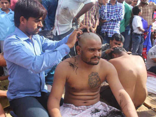 હાર્દિક પટેલ અને પાસના અન્ય કાર્યકર્તાઓએ સરકારના અત્યાચારના વિરોધમાં બોટાદ ખાતે મુંડન કરાવ્યું.