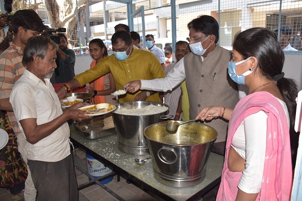 ગાંધીનગર સિવિલ હોસ્પિટલમાં આરોગ્યમંત્રીએ દર્દીઓના સ્વજનોને ભોજન પીરસ્યુ