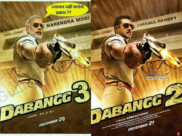 સલમાન ખાનની દબંગ ફિલ્મ સપ્ટેમ્બર-2010માં રિલીઝ થઈ હતી, જ્યારે મોદી આવી કમાલ 8 વરસ અગાઉ 2002માં કરી ચુક્યા હતાં. એ વાત જુદી છે કે સલમાનની જેમ, ત્યારે તેઓ પોતે પણ નહોતા જાણતાં કે દબંગ 2 અને દબંગ 3 પણ તેઓ જ રહેશે. સલમાનની દબંગ 2 શુક્રવારે રિલીઝ થવા જઈ રહી છે અને અરબાઝ ખાને જણાવ્યું છે કે દબંગ 3ની તૈયારીઓ પણ શરૂ થઈ ગઈ છે, પરંતુ ગુજરાતમાં મોદીએ ત્રીજી વાર ચુંટણી જીતી પોતાને દબંગ 2 કરતાં એક દિવસ અગાઉ અને દબગં 3ની પરિકલ્પના કરતાં ઘણા પહેલા દબંગ 3 સાબિત કર્યાં છે.