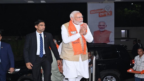 પ્રધાનમંત્રી નરેન્દ્ર મોદી ગુજરાતના ત્રણ દિવસ ચૂંટણી પ્રચાર કરી રહ્યા છે. ત્યારે રવિવારે સાંજે ચૂંટણી પ્રચાર કર્યા બાદ અચાનકર કમલમ ગંધીનગર ખાતે કાર્યાલયમાં કામ કરતા લોકો સાથે નિરાંતે બેસિને હળવા મૂળમાં ચર્ચા કરી હતી. નર