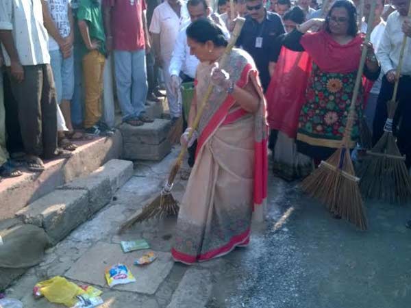 નરેન્દ્ર મોદીએ આજે સવારે સ્વચ્છતા અભિયાન શરૂ કર્યા બાદ ગુજરાતના મુખ્યમંત્રી આનંદીબેન પટેલે બાપુના ગામ પોરબંદર ખાતેથી રાજ્યવ્યાપી સ્વચ્છતા અભિયાનની શરૂઆત કરી હતી. જેના ભાગરૂપે તેમણે ઝાડુ હાથમાં લઇને રસ્તાની સફાઇ કરી હતી. તો બીજી તરફ ઉમરેઠ નગરપાલિકા અને રોટરી ક્લબના સભ્યોઓ પણ સફાઇમાં જોડાયા હતા. રાજકોટમાં પણ મ્યુનિસિપલ કમિશનરે કર્મચારીઓ પાસે સ્વચ્છતાના શપથ લેવડાવ્યા હતા. તો ચાલો તસવીરો થકી એ નિહાળીએ.