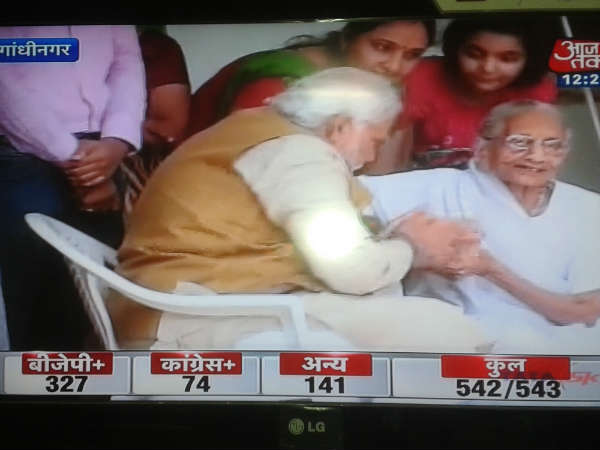 વિજય મળતાની સાથે જ નરેન્દ્ર મોદી પોતાના માતાને મળવા ગયા હતા.