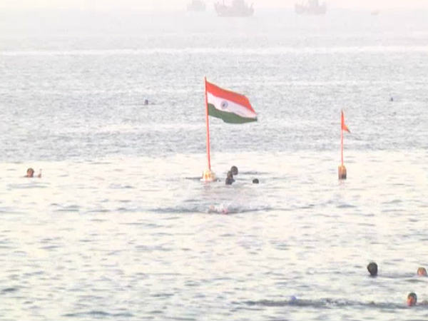 પોરબંદરમાં જાંબાઝ તરવૈયાઓ ફરકાવે છે દરિયાની વચ્ચે રાષ્ટ્રધ્વજ