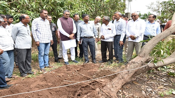 મંત્રીએ ત્યારબાદ માંડવી તાલુકાના ગઢશીશાના વરઝડી વિસ્તારમાં વિશનજી પ્રેમજી ભગતની વાડીની મુલાકાત લઈને પડી ગયેલા આંબાના ઝાડને પુનર્જીવિત કરવાની કામગીરીનું નિરીક્ષણ કર્યું હતું . આણંદ કૃષિ યુનિવર્સિટીના નિષ્ણાતો દ્વારા આંબાના ઝાડને કઈ રીતે પુનઃ સજીવન કરી શકાય તે અંગેની પદ્ધતિનું નિદર્શન કરવામાં આવ્યું હતું . તેમજ આ અંગેની સંપૂર્ણ પ્રક્રિયાની માહિતી મંત્રીને આપવામાં આવી હતી.