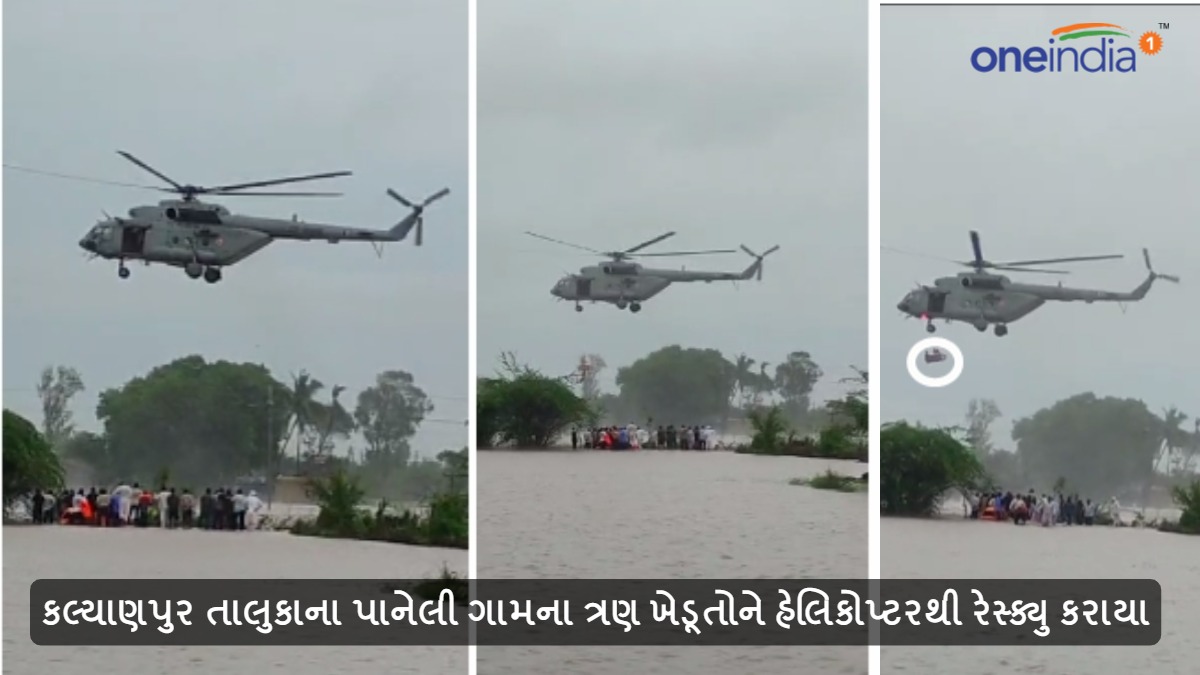 આવો જ એક કિસ્સો દેવભૂમિ દ્વારકા જિલ્લામાંથી સામે આવ્યો છે. જ્યાં કલ્યાણપુર તાલુકાના પાનેલી ગામના ત્રણ ખેડૂતોને હેલિકોપ્ટરની સહાયતાથી રેસ્ક્યુ કરવામાં આવ્યા હતા.