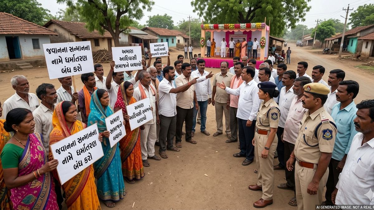 નવસારી જિલ્લાના વાંસદા તાલુકાના સારા ગામે એક નિવૃત્ત CRPF જવાનના સન્માન સમારોહ દરમિયાન ભારે હોબાળો મચ્યો હતો. ગ્રામજનોએ આક્ષેપ કર્યો છે કે આ જાહેર કાર્યક્રમની આડમાં મોટી સંખ્યામાં લોકોનું ધર્માંતરણ કરાવવાની પ્રવૃત્તિ કરવામાં આવી રહી હતી.