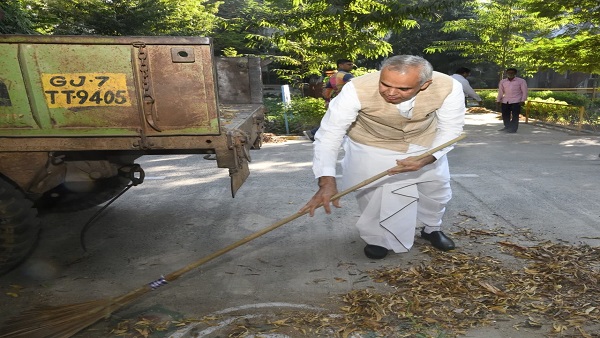 રાજ્યપાલ આચાર્ય દેવવ્રતજી આજે પણ વિદ્યાપીઠ જઈને સફાઈ કામદારો સાથે સફાઈ કાર્યમાં જોડાયા