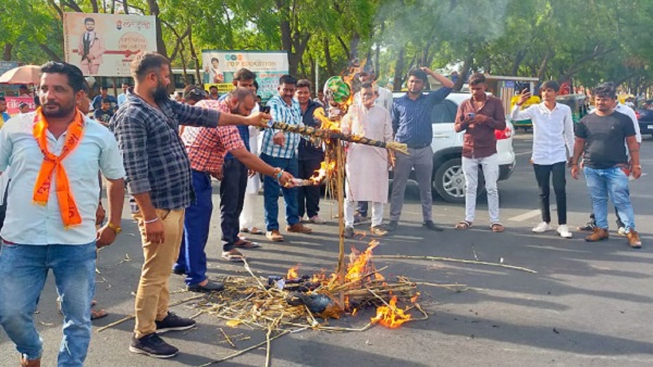 રાજસ્થાનમાં યુવકની હત્યાને વખોડતો પૂતળા દહનના કાર્યક્રમ ગાંધીનગરમાં યોજાયો