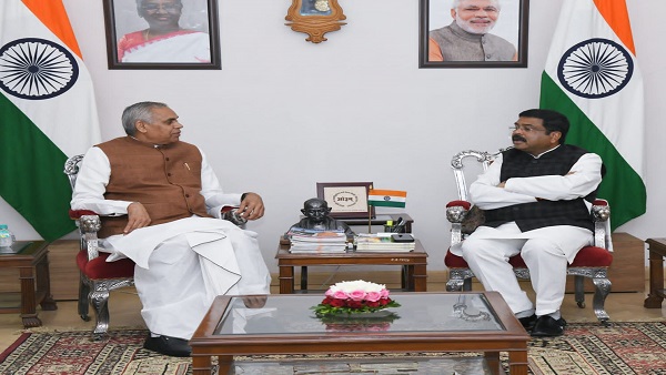કેન્દ્રીય મંત્રી ધર્મેન્દ્ર પ્રધાનની રાજ્યપાલ આચાર્ય દેવવ્રતજી સાથે સૌજન્ય મુલાકાત