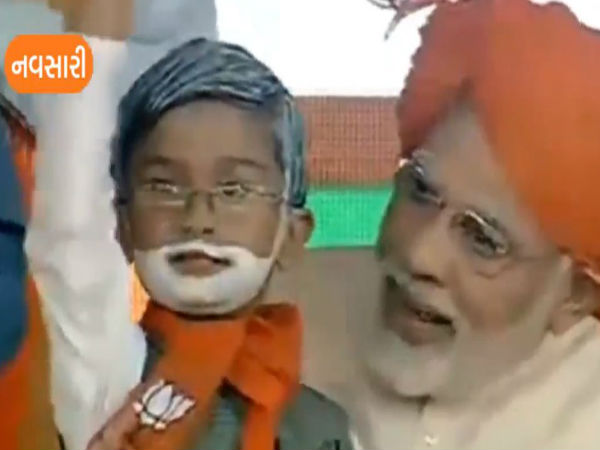 #WATCH: A child dressed up as PM Narendra Modi welcomed him at Navsari rally earlier today. #Gujarat pic.twitter.com/UaESV2w5Bk