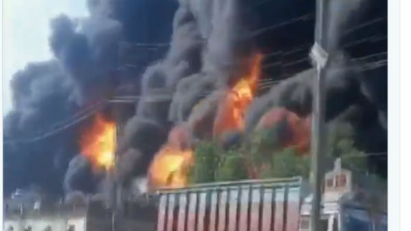 #WATCH: Fire breaks out at a chemical factory in Sikandra area of Agra. So far, no casualty reported. pic.twitter.com/5D03ZjRQkX