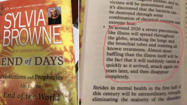 આ દરમિયાન સોશિયલ મીડિયા પર એક પુસ્તક વાયરલ થઈ રહ્યું છે, જેમાં કોરોના વાયરસને લઈ 12 વર્ષ પહેલા જ દાવો કરવામાં આવી ચૂક્યો છે, આ પુસ્તકનું નામ 'એંડ ઑફ ડેજઃ પ્રીડિક્શન એન્ડ પ્રોફેસીજ અબાઉટ ધી એન્ડ ઑફ વર્લ્ડ' છે, જેના લેખક સિલ્વિયા બ્રાઉન છે, જણાવી દઈએ કે આ પુસ્તક 2008માં પબ્લિશ થયું હતું.