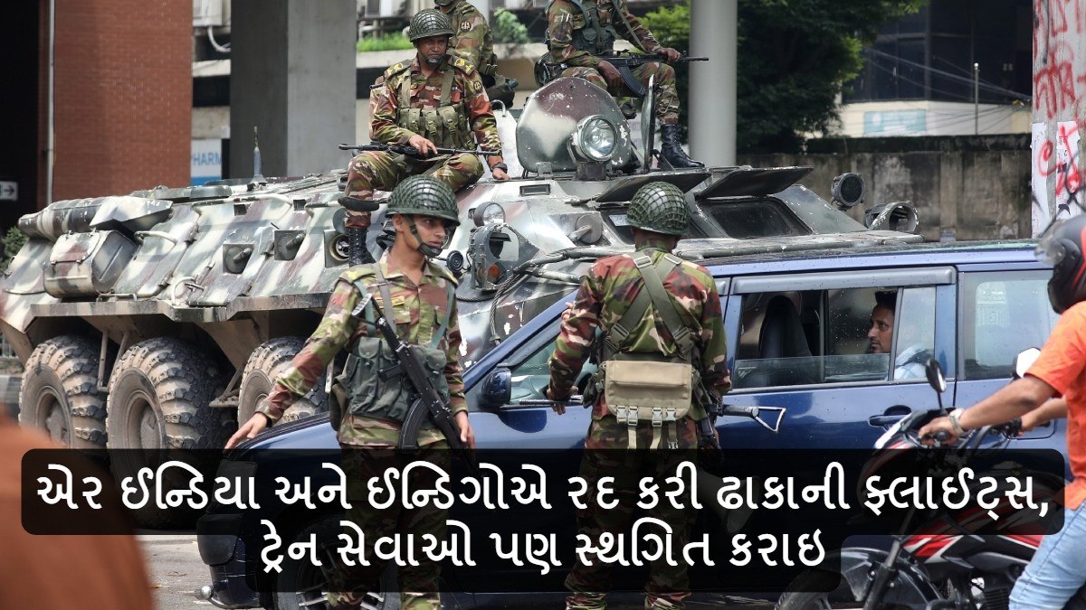 Bangladesh Crisis: એર ઈન્ડિયા અને ઈન્ડિગોએ રદ કરી ઢાકાની ફ્લાઈટ્સ, ટ્રેન સેવાઓ પણ સ્થગિત કરાઇ