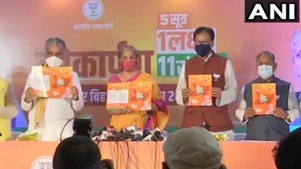 નવી દિલ્લીઃ બિહારમાં આ મહિનાના અંતમાં વિધાનસભાની ચૂંટણી થવાની છે. જેના કારણે બધી પાર્ટીઓએ એડી ચોટીનુ જોર લગાવી દીધુ છે. આ દરમિયાન ગુરુવારે પટનામાં ભારતીય જનતા પાર્ટીએ બિહાર ચૂંટણી માટે પોતાનો ચૂંટણી ઢંઢેરો જારી કર્યો જેમાં નાણામંત્રી નિર્મલા સીતારમણ સહિત ઘણા વરિષ્ઠ નેતા હાજર રહ્યા. આનાથી એક દિવસ પહેલા કોંગ્રેસ અને લોજપાએ પોતાનો ચૂંટણી ઢંઢેરો જારી કર્યો હતો.