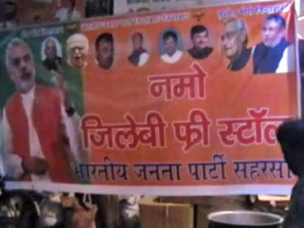 બિહારના પટનામાં કાર્યકર્તા નરેન્દ્ર મોદીના બ્રાન્ડીંગ માટે નમો ચા વેંચી રહ્યા હતા. હવે ભાજપ કાર્યકર્તા મફતમાં જલેબી વેંચી રહ્યા છે. આ પ્રકારની બ્રાન્ડીંગની શરૂઆત નવરાત્રિથી કરવામાં આવી છે. હવે જલ્દી નમો કાર્યકર્તા નમો છાવણી લગાવતા પણ નજરે પડશે.