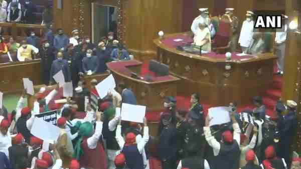 સપા કાર્યકર્તા સત્રના પહેલા દિવસે ટ્રેક્ટરથી વિધાન ભવન પહોંચ્યા હતા. તે ટ્રેક્ટરને પરિસરનીઅ અંદર લઈ જવા માંગતા હતા. પરંતુ સુરક્ષાકર્મીઓએ તેમને રોકી દીધા. ત્યારબાદ સપા કાર્યકર્તા ચૌધરી ચરણસિંહની પ્રતિમા પાસે જઈને બેસી ગયા. આ દરમિયાન સતત નારેબાજી થતી રહી. આ દરમિયાન સપા નેતાઓએ આરોપ લગાવીને કહ્યુ રાજ્યમાં કાયદો અને વ્યવસ્થાની સ્થિતિ ઠીક નથી. સાથે જ સપા નેતાઓએ ખેડૂતોનો મુદ્દો અને પેટ્રોલ-ડીઝલના ભાવોમાં થયેલા વધારાનો મુદ્દો ઉઠાવ્યો.