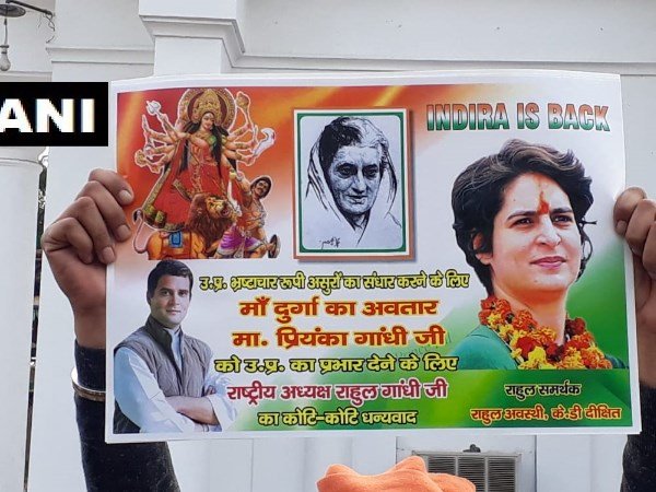 લોકસભા ચૂંટણી પહેલા કોંગ્રેસે પ્રિયંકા ગાંધીને સક્રિય રાજકારણમાં ઉતારીને ભાજપની મુશ્કેલીઓ વધારી દીધી છે. ઉત્તર પ્રદેશમાં કોંગ્રેસનો ઝંડો ફરકાવવા માટે રાહુલ ગાંધીનું આ માસ્ટર સ્ટ્રોક માનવામાં આવી રહ્યુ છે. રાહુલ ગાંધીના આ પગલાંથી અન્ય રાજકીય દળોમાં જ્યાં બેચેની જોવા મળી રહી છે તો વળી, પાર્ટી અને કાર્યકર્તાઓમાં પ્રિયંકાની એન્ટ્રી બાદ ઉત્સાહ જોવા મળી રહ્યો છે. યુપીમાં ઘણી જગ્યાએ કાર્યકર્તાઓએ પ્રિયંકા ગાંધીના મહાસચિવ બનાવવા પર ઉજવણી કરી છે. કોંગ્રેસી કાર્યકર્તાઓએ પોતાના પોસ્ટરો પર પ્રિયંકા ગાંધીને મા દુર્ગાના અવતાર ગણાવ્યા છે. આટલુ જ નહિ આ પોસ્ટર્સમાં 'ઈન્દિરા ઈઝ બેક' પણ લખવામાં આવ્યુ છે.