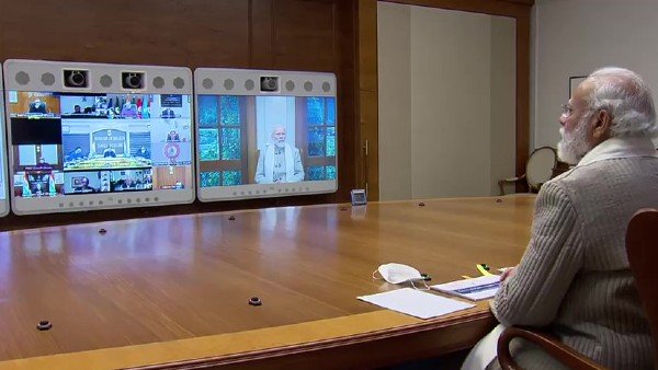 Delhi: Prime Minister Narendra Modi chairs a meeting to review the COVID-19 situation in the country, through video conference pic.twitter.com/EY5u7LAaC3