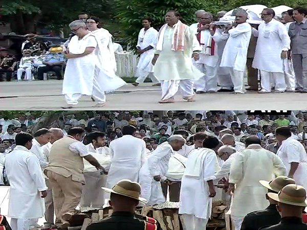 પૂર્વ પ્રધાનમંત્રી અને ભાજપના ભીષ્મ પિતામહ અટલ બિહારી વાજપેયીને તેમની દત્તક લીધેલી પુત્રી નમિતા ભટ્ટાચાર્યએ મુખાગ્નિ આપી.