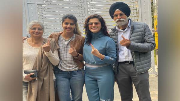 દિલ્લીમાં વિધાનસભીની 70 સીટો પર મતદાન ચાલુ છે. આ દરમિયાન બોલિવુડ અભિનેત્રી તાપસી પન્નૂએ પણ પોતાનો મત આપ્યો છે. તે પરિવાર સાથે મત આપવા પહોંચી. તેણે પરિવાર સાથે મત આપ્યાના ફોટા પોતાના અધિકૃત ટ્વિટર હેન્ડલ પર શેર કર્યા છે. આ ફોટામાં તાપસી સાથે તેના માતાપિતા અને બહેન દેખાઈ રહ્યા છે.