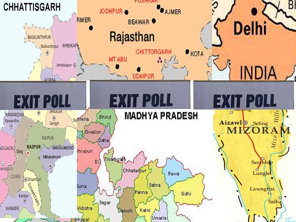 આ એક્ઝિટ પોલ પર નજર ફેરવવામાં આવે તો જાણવા મળે છે કે, મોટાભાગના રાજ્યોમાં ભાજપ, કોંગ્રેસ કરતા આગળ છે, જ્યારે મિઝોરમમાં કોંગ્રેસનું વર્ચસ્વ જોવા મળી રહ્યું છે. દિલ્હી, મધ્યપ્રદેશ, રાજસ્થાન અને છત્તીસગઢમાં કેસરિયો લહેરાશે તેવો અણસાર મળી રહ્યો છે. અહીં નીચે વિવિધ ચેનલો દ્વારા કરવામાં આવેલા એક્ઝિટ પોલ અંગે માહિતી આપવામાં આવી છે.