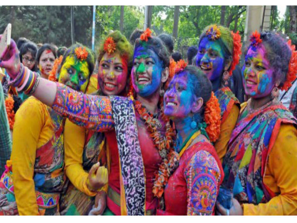 કલકત્તામાં બસંત ઉત્સવ દરમિયાન વિદ્યાર્થીઓએ ટ્રેડિશનલ પોષાકમાં હોળીની ઉજવણી કરી હતી.