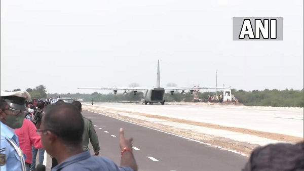 C-130J સુપર હર્ક્યુલસ ટ્રાન્સપોર્ટ એરક્રાફ્ટે સંરક્ષણ પ્રધાન રાજનાથ સિંહ, માર્ગ પરિવહન મંત્રી નીતિન ગડકરી અને એર ચીફ માર્શલ RKS ભદૌરિયાને લઈને જાલોર નેશનલ હાઈવે પર ઈમરજન્સી ફિલ્ડ પર લેન્ડિંગ કર્યુ હતું.