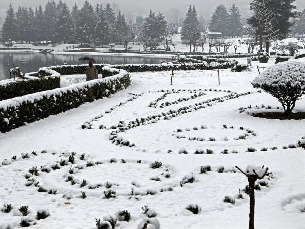 શ્રીનગર : બગીચામાં બરફ પડતા અનોખી ડિઝાઇન તૈયાર થઇ હતી