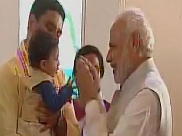 ત્યારે આવું જ કંઇક જોવા મળ્યું આંધ્રપ્રદેશમાં. આંધ્રપ્રદેશની રાજધાની અમરાવતીના શિલાન્યાસ વખતે પીએમ નરેન્દ્ર મોદીએ કેબિનેટ મિનિસ્ટર ચંદ્રાબાબુ નાયડૂના પોત્રને મળ્યા હતા.