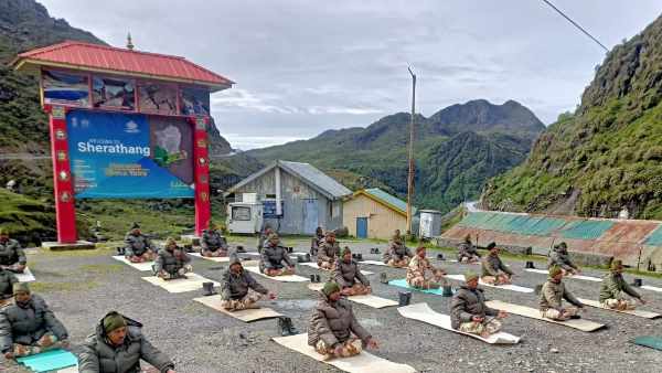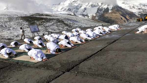 J&K | Troops deployed at an altitude of 13000 ft, including at Amarnath holy cave, Brarimarg, Sangam, Baltal and Domel performed Yoga on #InternationalDayofYoga. It was attended by around 450 soldiers at these locations. pic.twitter.com/dPs6NinaiV
