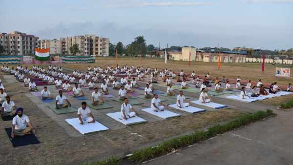 Assam CM Himanta Biswa Sarma participates in a Yoga session in Dibrugarh, on #InternationalDayofYoga