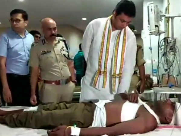 Agartala: CM Biplab Deb reaches hospital to meet jawans of 8th battalion of Tripura State Rifles who were injured in bus accident in Baramura hills of West Tripura,says "Doctors are looking after them, I believe they'll be fine soon. Chief Secy, DG&other police officers are here" pic.twitter.com/r4wN6NCWaD
