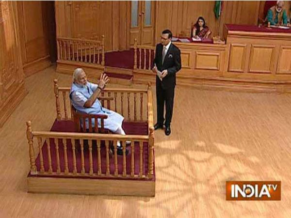 નવી દિલ્હી: દેશના સૌથી લોકપ્રિય નેતા અને ભારતીય જનતા પાર્ટી તરફથી વડાપ્રધાન પદના ઉમેદવાર નરેન્દ્ર મોદીએ ઇન્ડિયા ટીવીને ઇન્ટરવ્યું આપ્યો. નરેન્દ્ર મોદીનું કોઇપણ ભારતીય મીડિયાને આપેલો પ્રથમ ઇન્ટરવ્યું હતો. જી હાં ઇન્ડિયા ટીવીના લોકપ્રિય શો 'આપ કી અદાલત'માં નરેન્દ્ર મોદીએ રજત શર્માના પ્રશ્નો જવાબ આપ્યા.