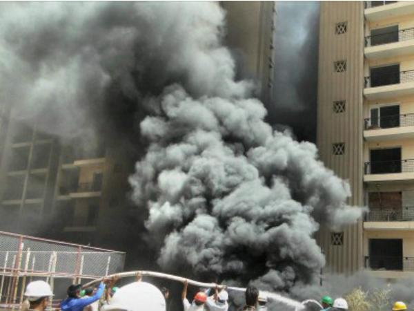 ગાજિયાબાદમાં એક એપાર્ટમેન્ટમાં લાગેલી આગ બાદ નિકળતો ધૂમાડો.