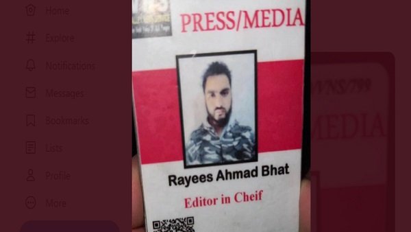 જમ્મુ કાશ્મીર પોલિસે જણાવ્યુ કે એનકાઉન્ટરમાં માર્યો ગયેલો આતંકી રઈશ અહેમદ ભટ્ટ પહેલા પત્રકાર હતો, તે પોતાનુ ઑનલાઈન ન્યૂઝ પોર્ટલ વેલી ન્યૂઝ સર્વિસ અનંતનાગથી ચલાવતો હતો. 2021માં તે આતંકી ગતિવિધિઓમાં શામેલ થઈ ગયો. તેની સામે આતંકી ગુનાઓની પહેલેથી જ બે એફઆઈઆર નોંધાયેલી છે. પોલિસે અહેમદ ભટ્ટનુ ઓળખપત્ર પણ જાહેર કર્યુ છે જેમાં લખ્યુ છે કે વેલી ન્યૂ સર્વિસનો એડિટર ઈન ચીફ હતો.