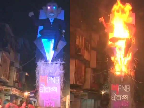 હોળીના દિવસે આખા દેશમાં હોલિકા દહન કરવામાં આવે છે. પરંતુ મુંબઈ વર્લીમાં એક અનોખી હોળી સળગાવવામાં આવી હતી. ત્યાં લોકોએ હોલિકા દહન માટે 58 ફુટનું પૂતળું બનાવ્યું હતું. આ પૂતળું પંજાબ નેશનલ બેંકના ઘોટાળાને દર્શાવી રહી હતી. આ પૂતળું નીરવ મોદીનું બનાવવામાં આવ્યું હતું જેને એક મોટા ડાયમંડ પર બેસાડેલો દેખાડ્યો હતો અને તેના પાર લખ્યું હતું પીએનબી બેંક સ્કેમ.