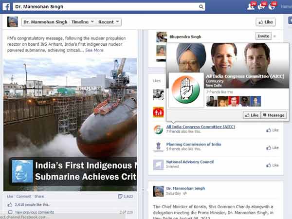અત્રે આપ જોઇ શકો છો, પ્રધાનમંત્રી મનમોહન સિંહના ફેસબુક પેજનો સ્ક્રીન શોટ જેમાં અમેરિકન પરમાણુ સબમરીન છે.