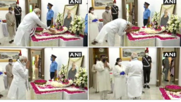 પ્રધાનમંત્રી મોદી પણ 10 રાજાજી માર્ગ પહોંચ્યા અને તેમણે પ્રણવ મુખર્જીના ફોટા પર શ્રધ્ધાસુમન અર્પિત કરીને તેમને ભાવભીની શ્રદ્ધાંજલિ અર્પણ કરી.