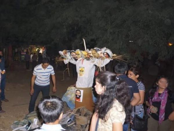 જ્યાં એક તરફ વિજયાદશમીના અવસર પર સમગ્ર દેશમાં રાવણનું પૂતળુ બાળવામાં આવ્યુ ત્યાં જેએનયુના કૅમ્પસમાં પ્રધાનમંત્રી નરેન્દ્ર મોદીનું પૂતળુ બાળવામાં આવ્યુ. આ ઘટના મંગળવાર રાતની છે, જ્યારે દિલ્હીની જવાહરલાલ નહેરુ યુનિવર્સિટીમાં અમુક છાત્રોએ પ્રધાનમંત્રી મોદીનું પૂતળુ બાળીને પોતાનો ગુસ્સો વ્યક્ત કર્યો હતો.