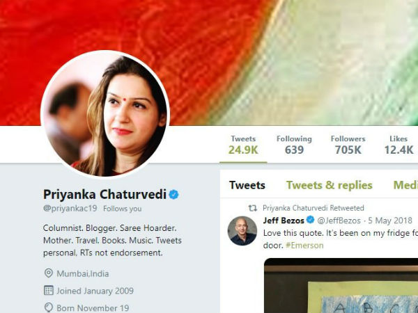 લોકસભા ચૂંટણી વચ્ચે કોંગ્રેસને એક મોટો ઝાટકો લાગ્યો છે. કોંગ્રેસની મહિલા પ્રવક્તા પ્રિયંકા ચતુર્વેદીએ પાર્ટીથી રાજીનામુ આપી દીધું છે. ખરેખરે પ્રિયંકા ચતુર્વેદીએ પોતાના ટ્વિટર હેન્ડલથી કોંગ્રેસનું નામ હટાવી દીધું છે. ત્યારપછી આ વાત ઘણી ઉડી રહી છે કે તેમને કોંગ્રેસથી રાજીનામુ આપી દીધું છે. હવે આખરે પ્રિયંકા ચતુર્વેદી ઘ્વારા પોતાના ટ્વિટર હેન્ડલ પર પોસ્ટ કરીને તેમના રાજીનામાં વિશે જાહેરાત કરવામાં આવી છે.