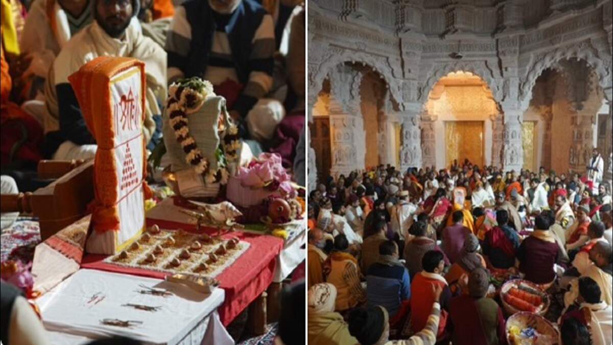 Ram Mandir: અયોધ્યામાં 22 જાન્યુઆરીએ યોજાનાર રામ મંદિરના પ્રાણ પ્રતિષ્ઠાની તૈયારીઓ અંતિમ ચરણમાં છે. રામ મંદિરના અભિષેકને લઈને પૂજા અને અનુષ્ઠાન 16 જાન્યુઆરીથી જ શરૂ થઈ ગયું છે. આજે 19 જાન્યુઆરીએ રામ મંદિર પ્રાણ પ્રતિષ્ઠા વિધિનો ચોથો દિવસ છે.
