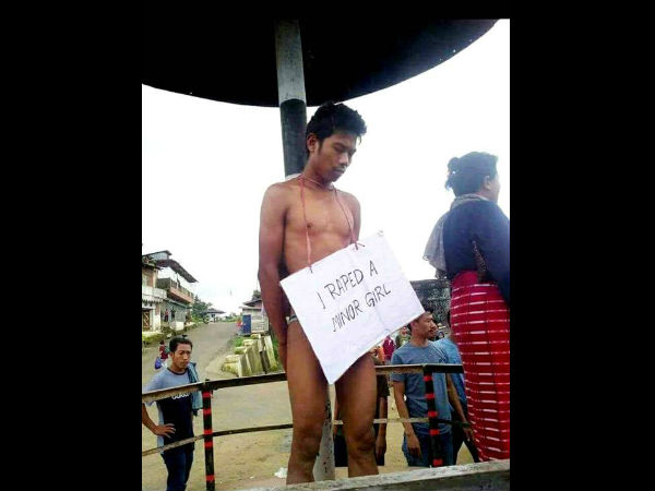 નાગાલેન્ડ ના લૉંગલેન વિસ્તારમાં 27 જૂને સાતમા ધોરણમાં ભણતી બાળકી સાથે રેપની ઘટના ઘટી. બાળકી સાથે 29 વર્ષના એક આરોપી લોન્ગયા ફોમૅ રેપ કર્યો. આરોપી ઘ્વારા પોતાનો આરોપ પણ કબૂલ કરી લેવામાં આવ્યો છે. આ ઘટનાના બે દિવસ પછી લોકોએ આરોપીને પકડી લીધો. ત્યારપછી લોકોએ સ્થાનીય મહિલા સંગઠન કાર્યકર્તાઓ સાથે મળીને આરોપીને સજા આપી.