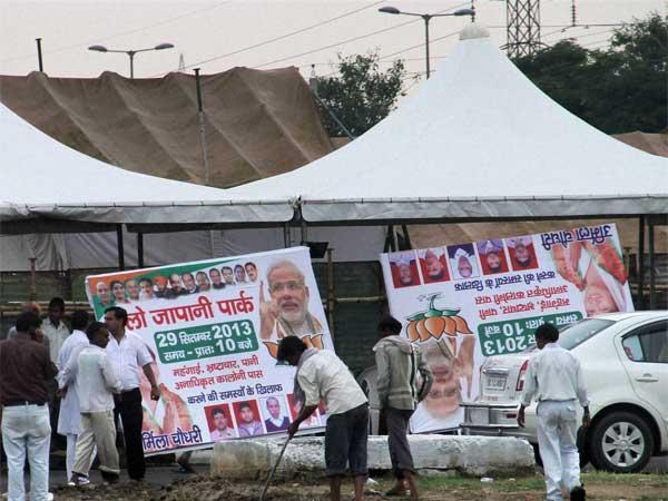 નવી દિલ્હી, 27 સપ્ટેમ્બર: ભાજપના પીએમ ઇન વેટિંગ નરેન્દ્ર મોદીની રેલી દિલ્હીમાં પ્રથમ રેલીને પાર્ટીને ઘણો ઉત્સાહ જોવા મળે છે. ભાજપના કાર્યકર્તાઓમાં જોર શોરમાં તે નરેન્દ્ર મોદી માટે સ્ટેજ તૈયાર કરવામાં જોડાયેલા છે. દિલ્હીના રોહીણીમાં નરેન્દ્ર મોદીની રેલી થવાની છે. અંદાજો લગાવવામાં આવી રહ્યો છે કે લાખોની સંખ્યામાં લોકો આ રેલીમાં સામેલ થશે.