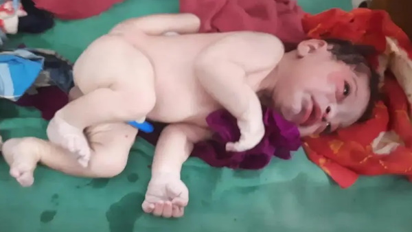 ત્રણ હાથ અને ત્રણ પગ સાથે જન્મેલું બાળક