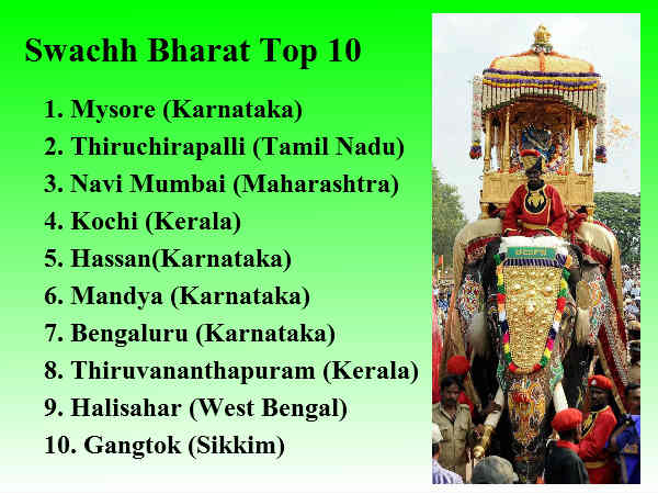 - સોલિડ વેસ્ટ મેનેજમેંટમાં સૌથી આગળ મૈસૂર રહ્યું.