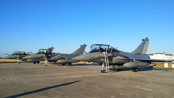 નવી દિલ્હીઃ ફ્રાંસથી મળેલ અત્યાધુનિક લડાકૂ વિમાન રાફેલનો પહેલો કાફલો આજે હરિયાણાના અંબાલા એરબેસ પર પહોંચી ગયો છે. 5 રાફેલ વિમાનોને રિસીવ કરવાખુદ એરફોર્સ ચીફ આરકેએસ ભદોરિયા અંબાલા એરબેસ પહોંચ્યા છે. ભારત માટે આ ગર્વની પળ છે જ્યારે વિશ્વના ઘાતક ફાયટર જેટમાંથી એક રાફેલ આજે ભારતીય વાયુસેનામાં સામેલ થઇ ગયું છે. આ દરમિયાન કેન્દ્રીય રક્ષામંત્રી રાજના સિંહે પોતાના સત્તાવાર ટ્વિટર હેન્ડલ પર પાંચેય રાફેલની સુરક્ષિત લેન્ડિંગનો વીડિયો પોસ્ટ કર્યો છે.