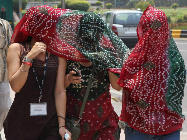 નવી દિલ્હી ખાતે ગરમીથી બચવા માટે દિલ્હીની યુવતીઓએ ઓઢણીનો ઉપયોગ બુરખા તરીકે કર્યો હતો.