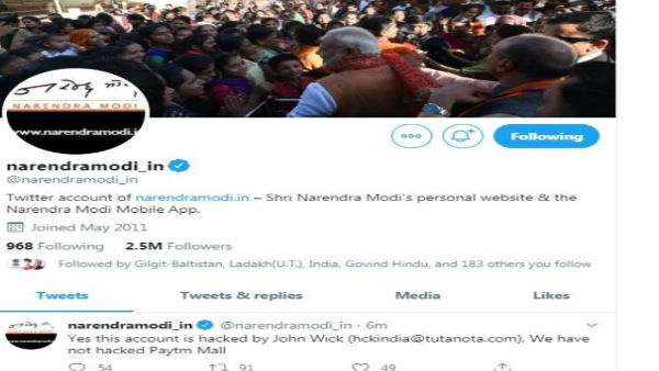 જણાવી દઈએ કે પીએમ મોદીની પર્સનલ વેબસાઈટનું ટ્વિટર અકાઉન્ટ વેરિફાઈડ અકાઉન્ટ છે, જેના પર 25 લાખથી વધુ ફોલોઅર્સ છે. આ હેકર્સ ગ્રુપ જૉન વિકને લઈ હાલમાં જ સમાચારમાં આવ્યું હતું, જેમાં તેમના પર પેટીએમ મોલના ડેટા ચોરી કરવાનો આરોપ લાગ્યો હતો. ડેટાના બદલે ફિરોતી માંગવાો આરોપ લાગ્યો હતો. હેકર્સે પીએમ મોદીના અકાઉન્ટને હેક કરી એ વાત પણ લખી કે તેમણે પેટીએમ મૉલ અકાઉન્ટ હેક નથી કર્યું.